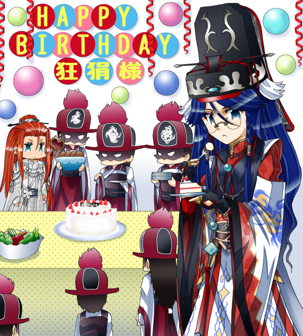 ハピバ狂狷!!!!!狂狷バースデーウィークも当日と言う事でバースデーイラ。手作り感あふれる狂狷バースデーパーリーin西幽衙門。 #サンファン #サンファンアート #西幽玹歌