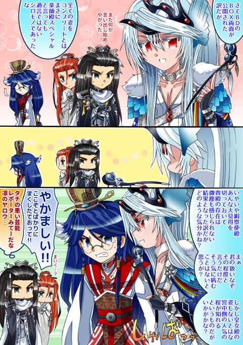 狂狷バースデーネタ。意外に巫謠にフレンドリーな狂狷取り巻き達…。イラストの方に巫謠がいたののネタばらしというか、まぁバレバレですな(笑)。 #サンファン #サンファンアート #西幽玹歌