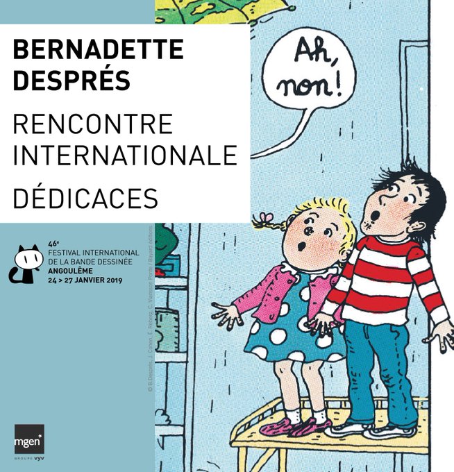 Bernadette Després sera au Festival pour une rencontre jeunesse le vendredi 25 janvier, de 11h30 à 13h30 à la @citebdangouleme, et pour une rencontre internationale le 26 janvier, de 10h à 11h à l'espace Franquin ! Apportez vos albums #TomTometNana @groupe_mgen @BayardEditionsJ