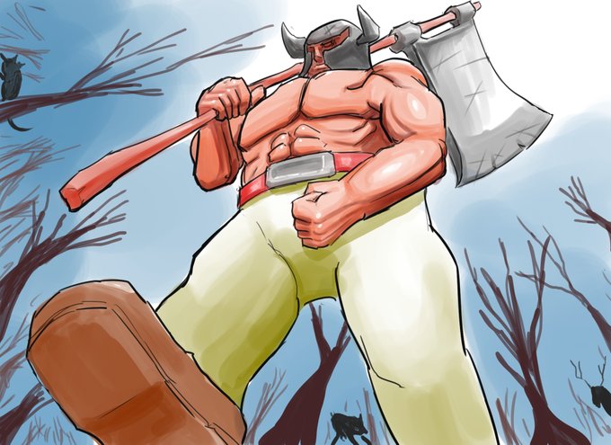 こう…威風堂々と斧を背負って歩くマッチョは俺の脳内にずっと住んでいたんだ…。 うまくなってから描きたかった物を何度でも描くために今描いていくッ!(勢い1000%) きっと明日になると後悔するんやろなぁ…。
