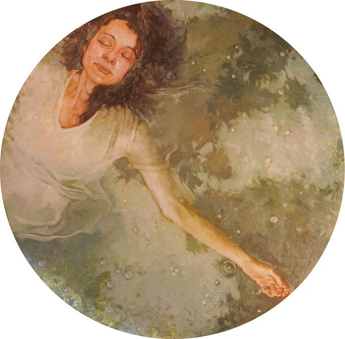 . @lorussoarts' amazing work, “Night Swimming” [Oil on panel, 24”] for the Beautiful Bizarre exhibition 'Midnight Garden' - opens this Saturday at @ModernEden!