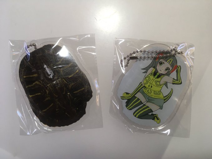 アカミミガメのオリジナルアクキーで両面印刷で裏には本物の甲羅がプリントされています‼︎