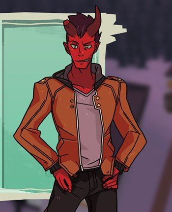 damien lavey from monster prom is beloved! pronouns are he/him (canon) and he/they/skull/arson (headcanon)!
