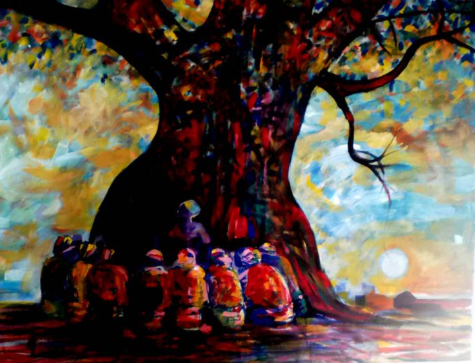 TALES BY MOONLIGHT - by Ben Adedipe - 40x28'' Acrylics on canvas - https://t.co/ByzsKeImYJ