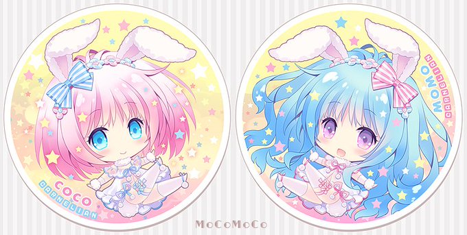 コミ1で吸水陶器コースター(裏面コルク)を作ろうとおもってるんです。冬にブランケットになった星うさぎちゃんに相棒が…モモちゃんとココちゃん、二人合わせて『モコモコ』☆大きい(?)姿も完成したらあっぷしますね。