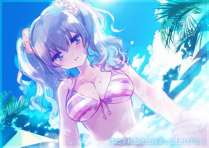 今仕上げ中の新刊表紙…中身は艦むすたちとの休日デートです。私服艦むす…でもこの表紙私服きてないやん…今気がついた…でもデートなんだよ…初月秋月照月とお月さまデート…