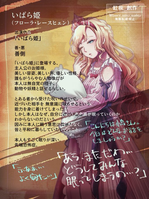 #絵本戦争_CS 2人目。無意識に近づく相手を眠らせてしまうお姫様です👸
