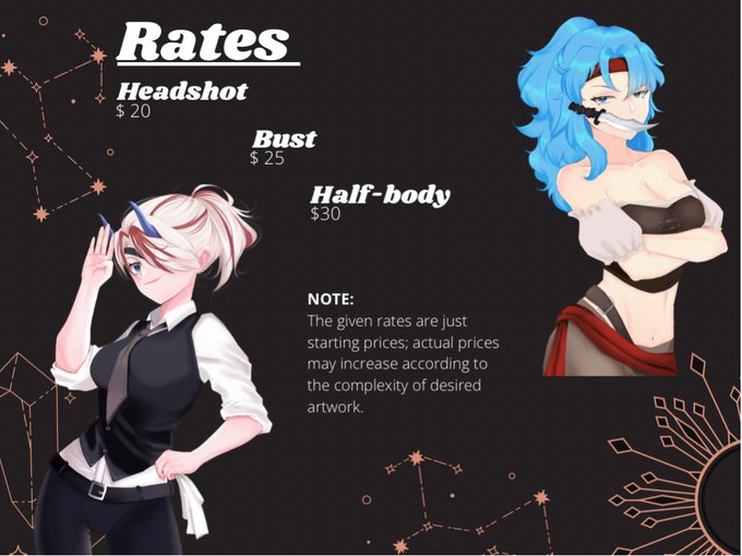@helly02_ Hallo, I specialize in anime icons! My rates for headshots start at $20, and busts start at $25 :))