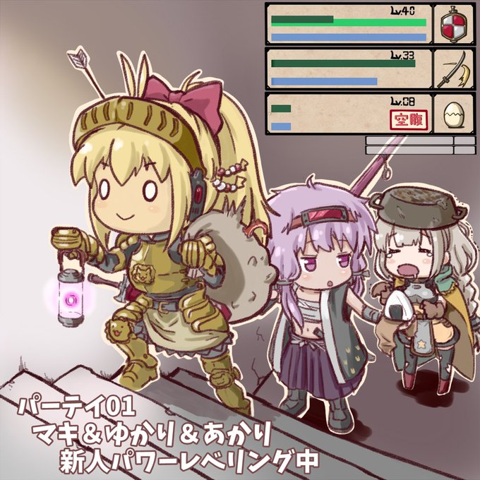 #ボイロファンタジー 東北3姉妹パーティ イタコ(ネクロマンサー)・ずん子(巫女)・きりたん(忍者) ずんだアローで戦利品が得られず常に金欠