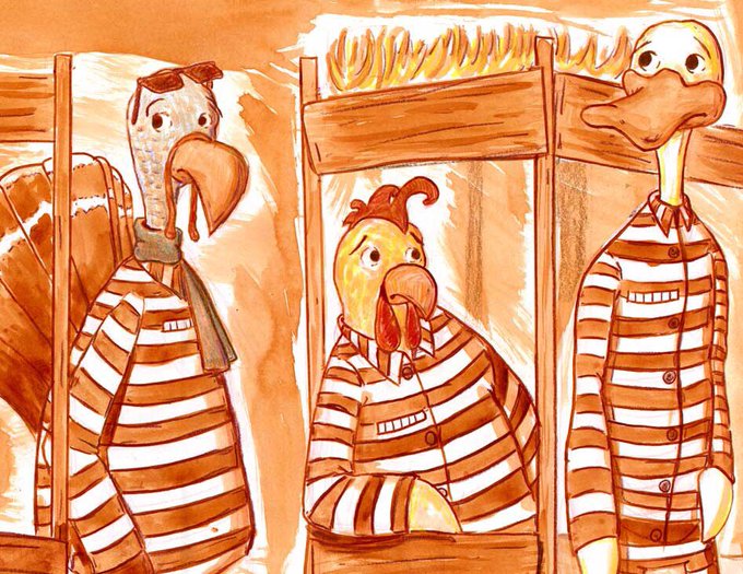 Spent #electionnight cooped up with these jailbirds. https://t.co/0SnViZ6YhU #kidlitart #turducken #illustration #thanksgiving