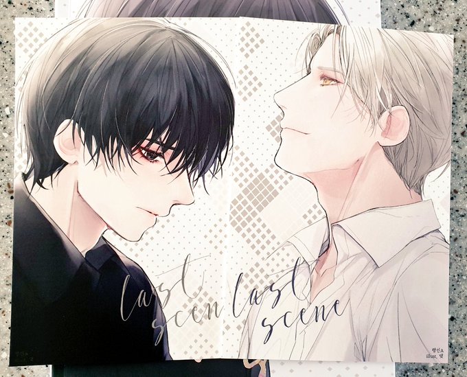 행인A님 라스트씬 왔당. 보들보들 벨벳커버 죠아. 하드보드지 덧대어져 있었는데도 살짝 찌그러짐 있었다. 이런건 운명이다. 특전 엽서 이뻐... 눈에서 꿀 떨어진다.
