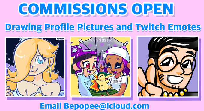 Commissions are still open, emotes are only 15 dollars each and pfp are 25. Check the reply to my pinned tweet for more details.