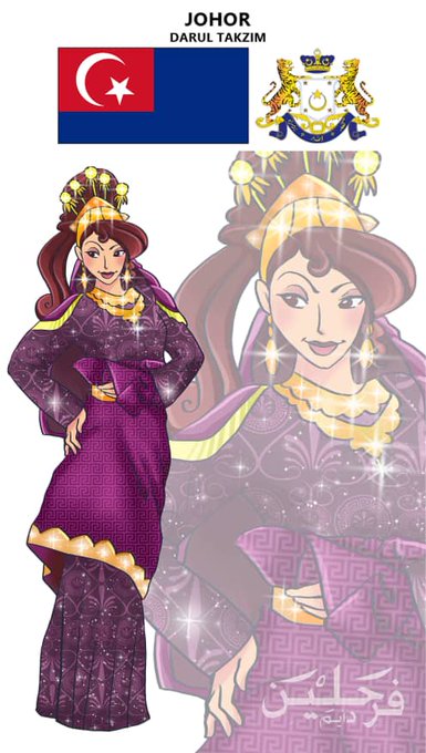 Lukisan watak puteri Disney diberi sentuhan busana nusantara.