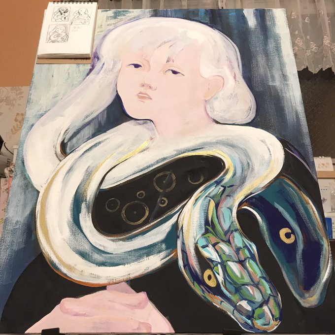 @idri_1537 さんから キャンバスの上にアクリルガッシュで女の子を描いてます 身体の平面な感じと 輪郭線で出す立体感が自分なりの表現です #絵描き繋がれ