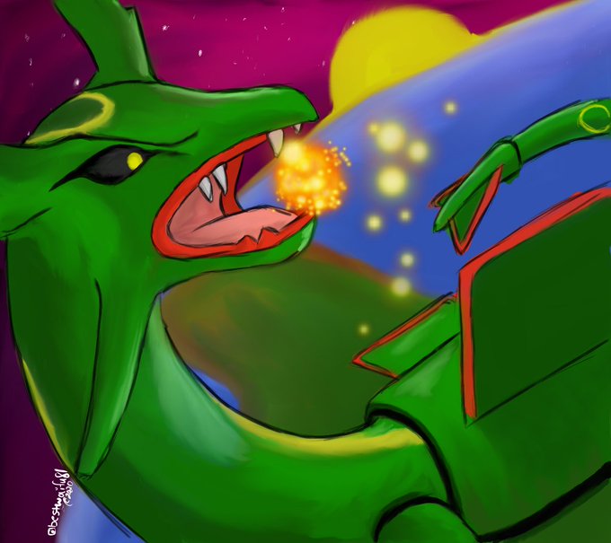 In honor of 25 years of #Pokemon, I'm doing 25 digital pokemon #paintings. #Rayquaza got the honor of being the first! Be sure to RT if you like it. Helps my art get seen! #anime #art #digitalart #artist #artistsontwitter #Pokemon25