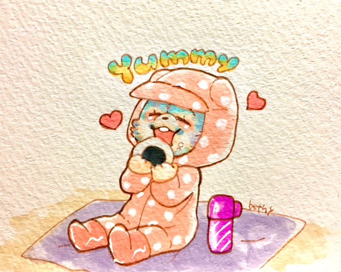 Yooさんからリクエストあったので。 おっきなおにぎり頬張るリブちゃんです。