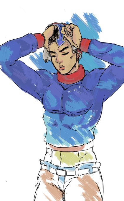 マンボさん@manbo_bom のミスタのイラストを塗らせて頂きました。筋肉の線が柔らかくてパツっとしていて塗っている間とても多幸感が得られて最高でした、本当にありがとうございます!!とても楽しかったです!!!