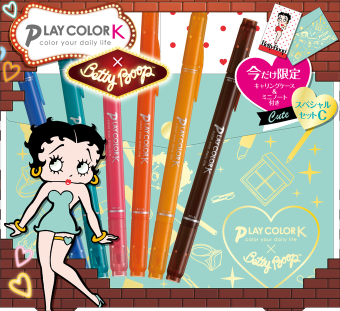 可愛い色で女子高生に大人気の水性カラーサインペン「プレイカラー K 」とベティーちゃんのオリジナルキャリングケースとミニノートがスペシャルセットになった限定アイテムが新発売! https://t.co/irRkemtaeO #プレイカラー #playcolor #bettyboop #ベティーブープ #ベティーちゃん #ベティちゃん