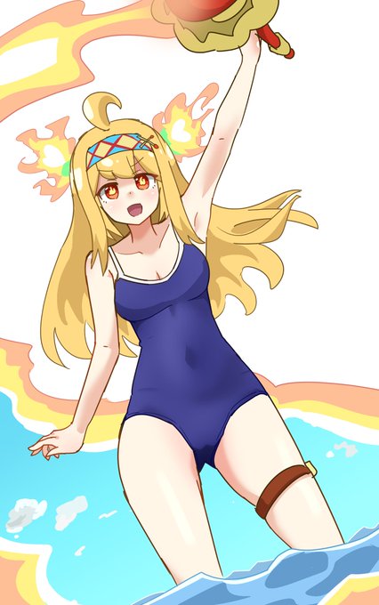 激究極シャルスタちゃん 夏α復刻記念でスク水描いてみました #モンストイラスト