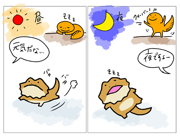 #フトアゴヒゲトカゲ のウリちゃんと #ヒョウモントカゲモドキ のあんずちゃんがかわいいドリー