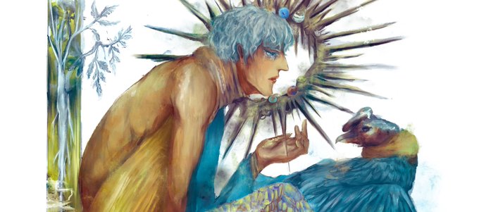 ウリエル、一回ごちゃごちゃのイメージで描いたけど、また後で引き算したりするかもなぁ…。腹は出したいから引き算したほうがバランスが…とか…入れたい色はここらへんになるのかなぁ…超ざっくり…
