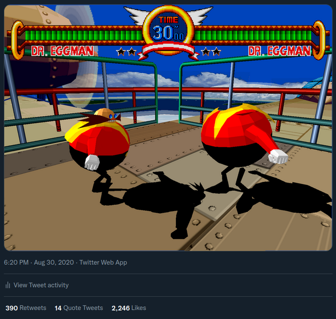 It's been nearly a year to the day I made the "slightly bigger Eggman" tweet that egoraptor retweeted and everyone went crazy for, but I now have a tweet to surpass it! Thank you everyone for enjoying this content!