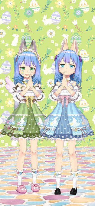 自分のサブと双子ちぇき🐣🐣 青衣装とカラコン羨ましいなぁ🥺 ぐるぐるほっぺ、もしかして可愛い?🍥