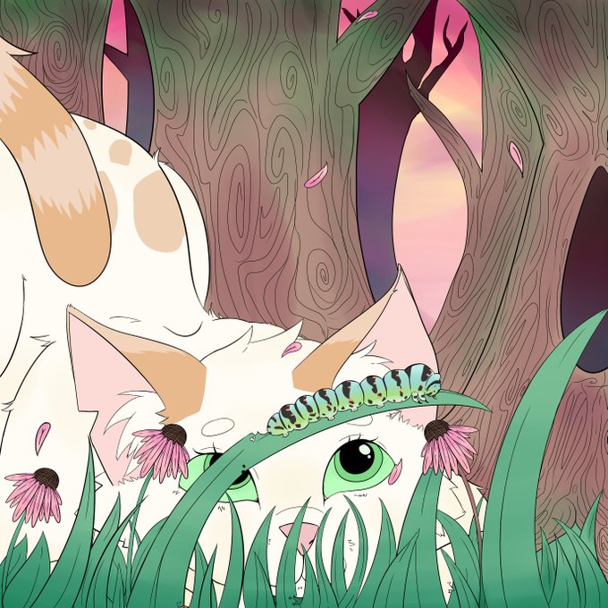hi i haven't uploaded art in like a week but heres a WIP of my WC oc Snowberry! She loves all thing insect, but Caterpillars are her favorite!