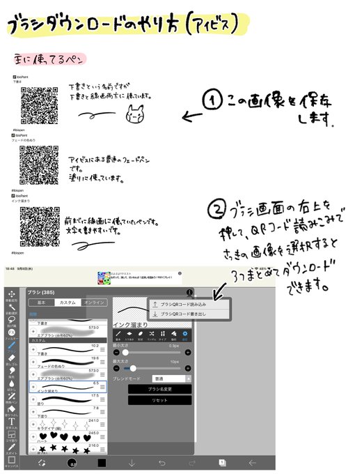 ご質問があったのでアイビスの服の塗り方と主に使ってるペンです。 ついでにQRコードも貼り付けておくので、興味ある人良かったら使ってみてください!