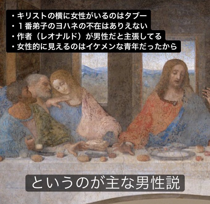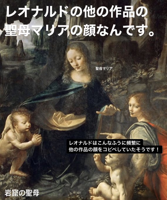 男性説・女性説どちらとも取れる余白や謎を仕込んだのが、レオナルド作品の面白いところなのではないかと思ってます😌