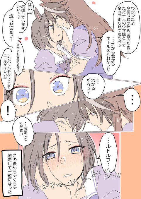 シンボリルドルフの最後のレース前のこのやりとり最高でしたよね・・・!スキップしてたら見逃してましたよ。デレるエアグルーヴ最の高でした。