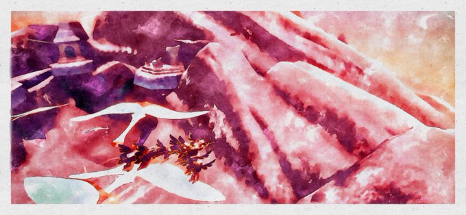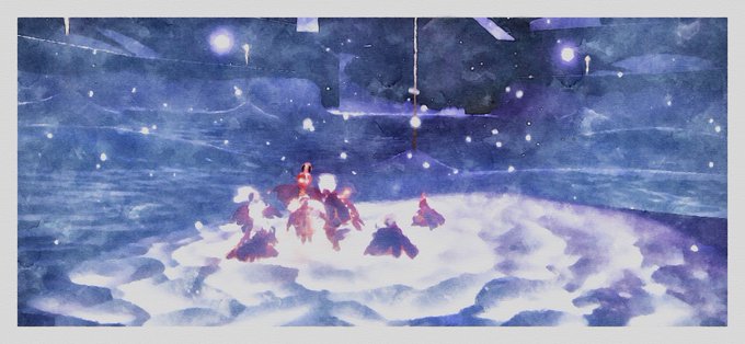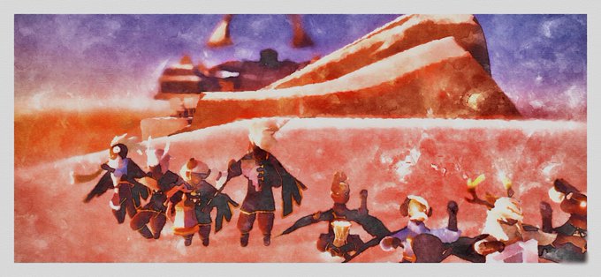 「物憂げな絵描きと眩く笑う麦わら帽子の幼子」 隠者の峠の先にある樹氷原に居る精霊(全て空想) #Sky創作