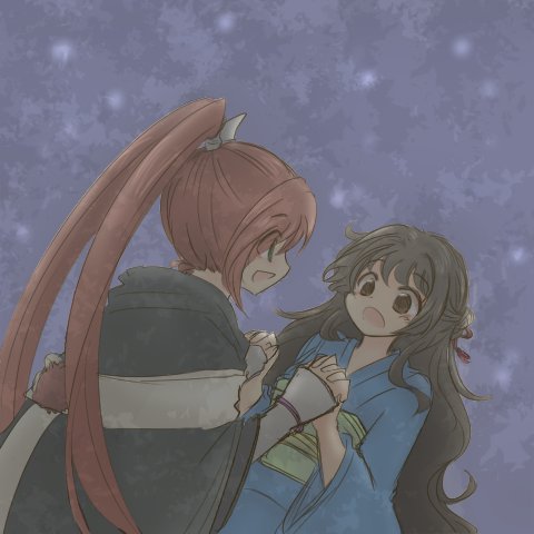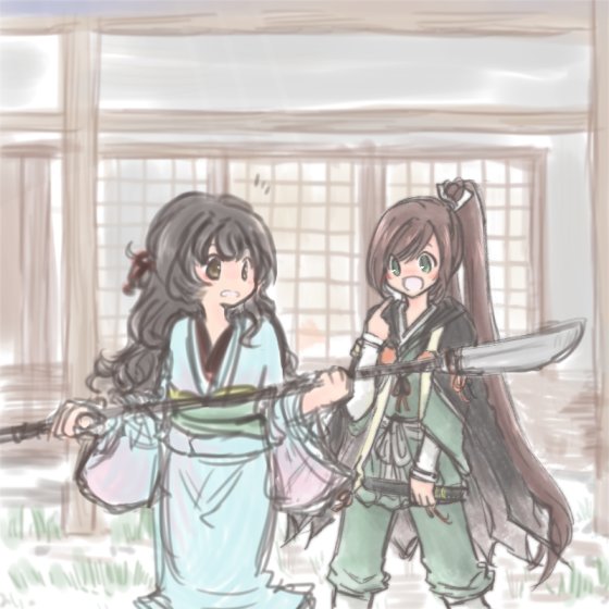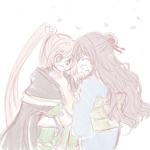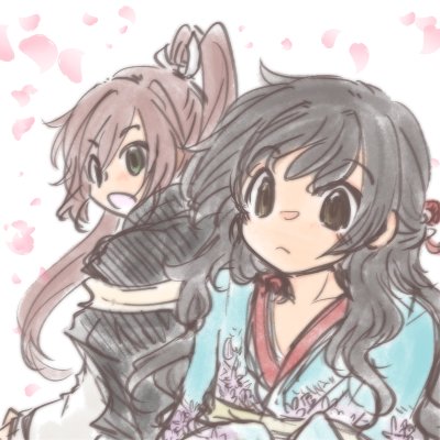 「香夜ついてるよ」「鈴懸だって、ほら」 桜の花びらとりあう二人🌸 #剣君版深夜の真剣お絵描き文字描き60分一本勝負