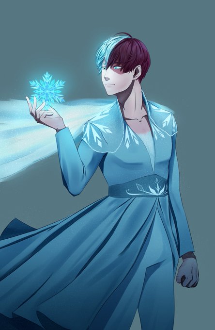 Todoroki de Boku no Hero como Elsa (roupa de Frozen 2)