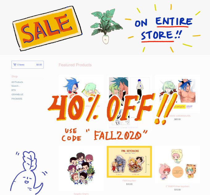 🎊 STORE OPENING 🎊 after one million years... with a sale!!!!! use code "FALL2020" for 40% off your entire purchase!! unfortunately for US ONLY due to current events >_<