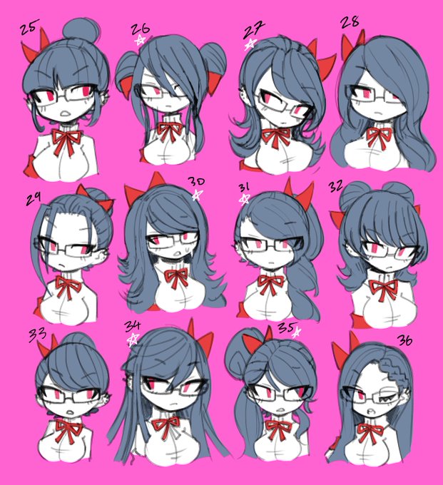 i was undecided on shimeyo's hair for a really long time so i did a ton of little sketches