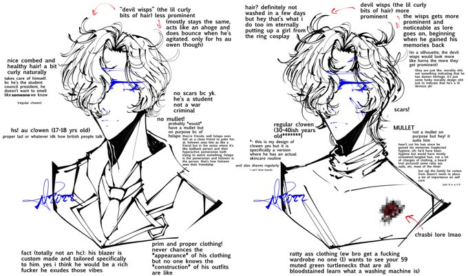 hs au and regular outsiderssmp c!owen! i included notes abt the designs just for fun bc im love c!owen but i will always slander him /hj