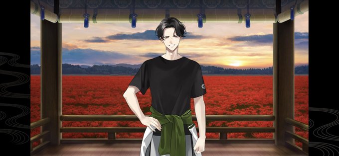 彼岸花の前に立つ豊前江 どの装束でも物語があるな………