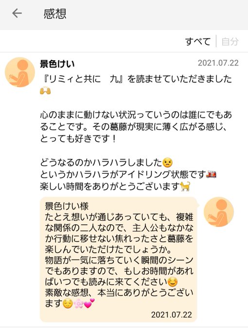 景色けい様@nukojamから感想をいただきました。とても励みになります❣️ありがとうございます😊