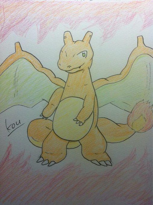 フォロワーさんのリクエスト、ポケモンからリザードンを描かさせていただきました!竜系はかなり苦戦しました…うーん、難しかった(^◇^;)