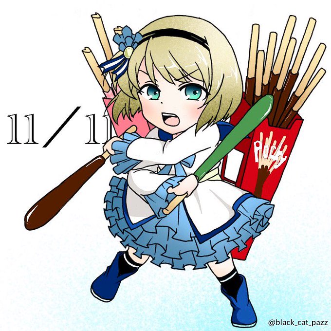 ポッキーの日ならコピシュの武器を全部ポッキーに変えても許されるはず #ポッキープリッツの日 #黒ウィズフリータイムお絵描き