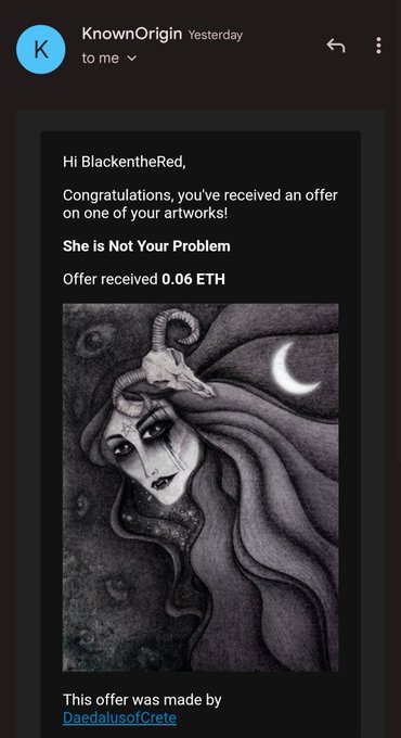 SO EXCITED!! My 1st 1/1 offer in 2023 is made by the amazing @DaedalusofCrete ! I'm so grateful, thank you so much my friend🖤