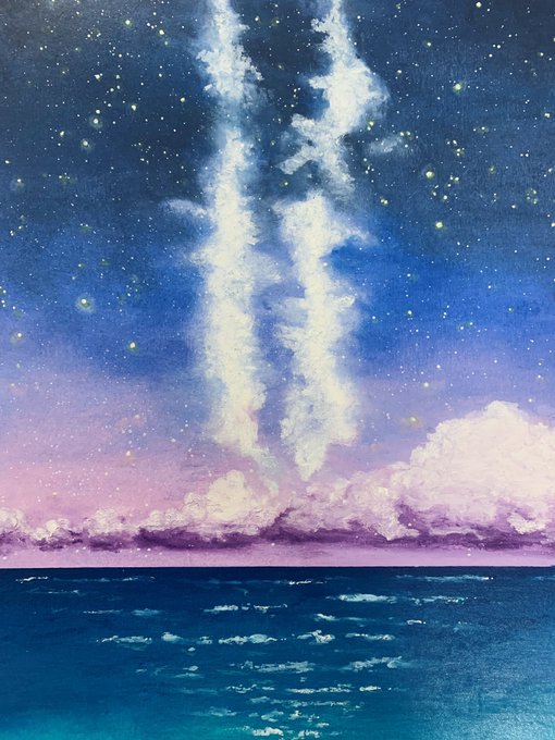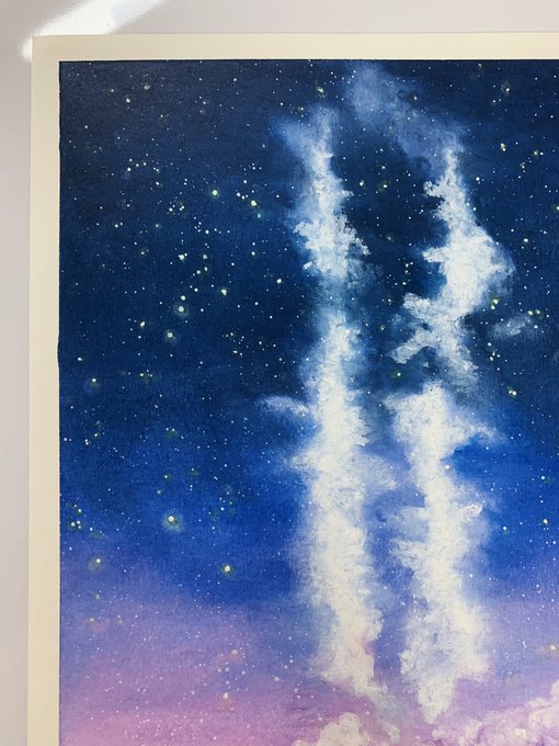 วาดสีชอล์คบนไซส์ A4 ครั้งแรก พอเสร็จแล้วภูมิใจสุดๆ ชอบที่ดาวเหมือนส่องแสงออกมาจริงๆ ✨