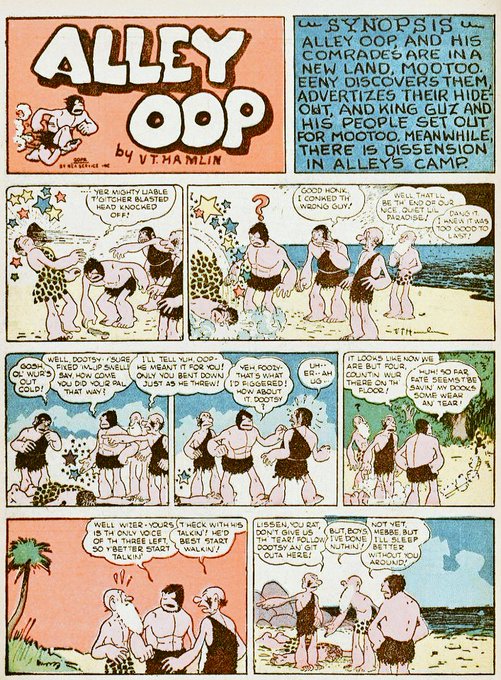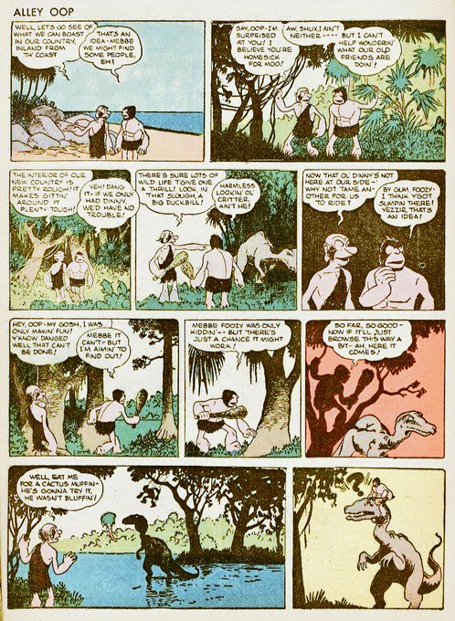 "Alley Oop" (part 14) by V.T. Hamlin (newspaper strips from 1937-1939 reprinted in 1942 Four Color#3 by Dell Comics).