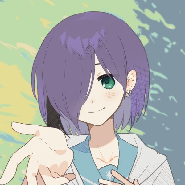 @yozakura_aiko 髪:色は淡い紫 右目辺りに黒のエクステ(メッシュ?)