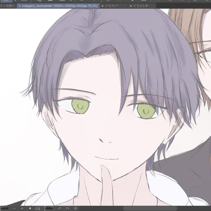 いろいろアレなので全体図はお見せしないんですけど、顔はかわいく描けた気がしないでもなくなくないのでちょっっっっとだけみてみてする