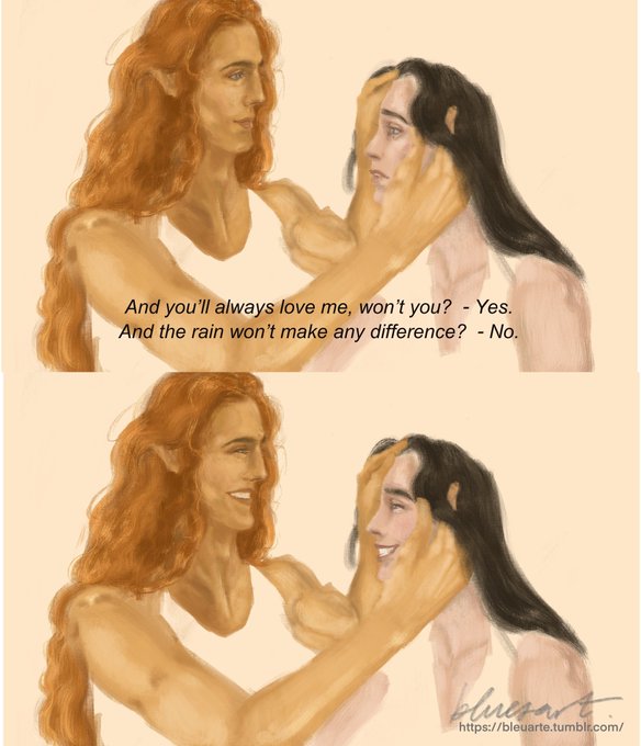 reupload because I fixed some mistakes but here’s fingolfin and Irisse (and her bow made out of stick😊)