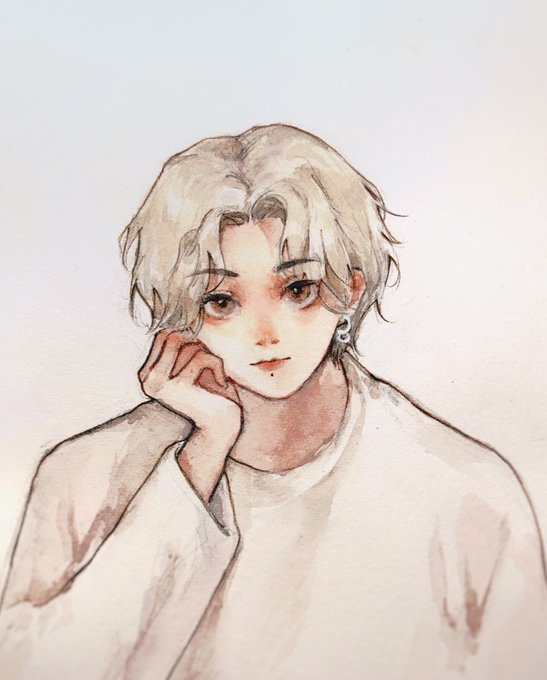 临摹极昼士老师的Phos! 画完法斯后整瓶水都是法斯色了👋🏿 #宝石の国 #水彩