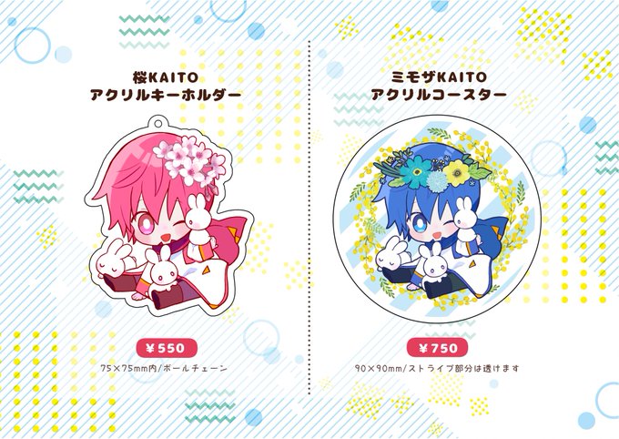 ソーダ色の海からの新作グッズです!! お花のイベントにちなんだ桜KAITOのアクリルキーホルダーとミモザKAITOのアクリルコースターがそれぞれ出ます!! 友人が限界同人しながら描いてくれました!!受注生産で約一ヶ月後ぐらいの発送になります!! 是非よろしくお願いします!!!!!! #かいとぱ https://t.co/56qnIhlGfu