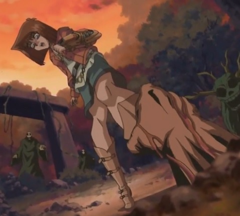 魔法騎士レイアース 47話 進んでいた通路が突然崩れ、海の近くの壁に穴が開いてしまう。 外へ吸い込まれそうになり、白いサイハイブーツの脚がキュッと内股に。 しかし踏ん張り続けられず、外へ吹き飛ばされてしまう海。 踏ん張るブーツのアップは大好物です。